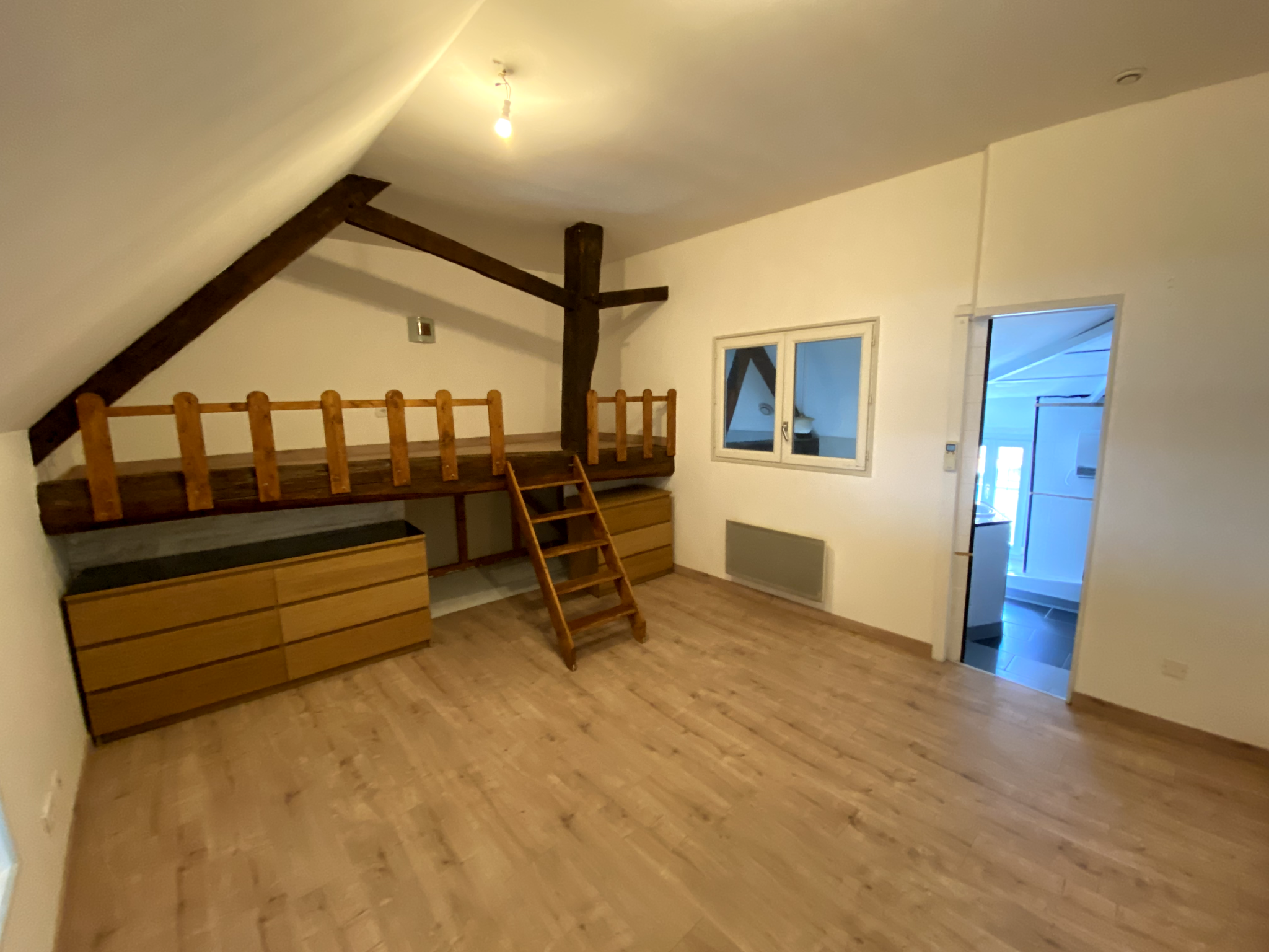 Au premier étage une mezzanine dessert deux chambres, un bureau et une salle d'eau avec wc.